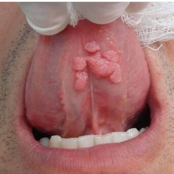 【舌头上还能感染尖锐湿疣?】大V“乐山陈晓宇”分享一张感染艾滋病的照片并感慨,“舌头这个部位长尖锐湿疣还是比较少见,有些部位还是少舔为好。现在很多咨询陈医生的都喜欢去做半套服务,其中有一项就是毒龙,如果被他一舔,你菊花可能就会长菜花了。”