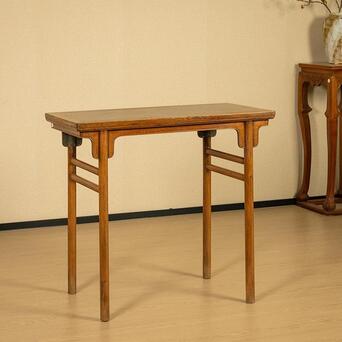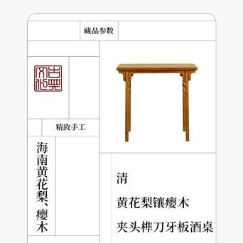 清 黄花梨镶瘿木夹头榫刀牙板酒桌 尺寸:88×417×805 酒