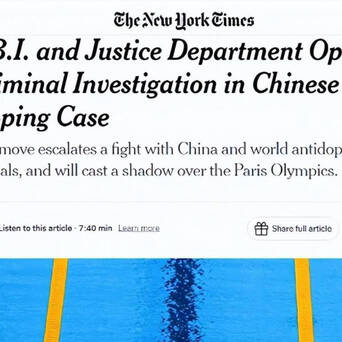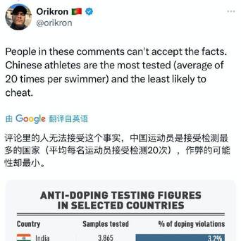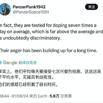 与此相比,中国运动员拿到WADA的豁免是最少的,“持证吃药”的是最少的,遭遇的兴奋剂检查是最多的,待遇是最苛刻的,稍有成绩,就会遭到整个欧美舆论圈的质疑和围攻,甚至美国会动用FBI这种国家暴力机关来调查中国游泳……简直是丧心病狂。